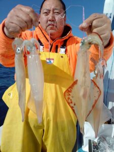 昨日はダメな日でしたが、本日はサバ、オアカ、イワシに邪魔されながらスルメ混じりでポツポツ 中、大 ヤリイカ トップ30杯超え何人か、なんとかなりました 良い日、悪い日あります!チャレンジャー募集!!