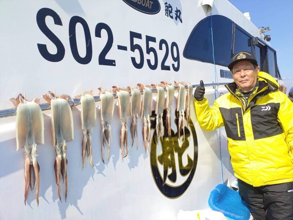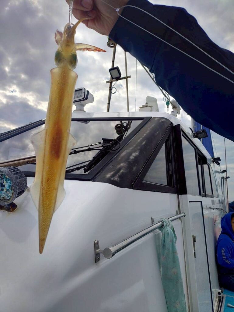 ヤリはレアキャララッキーアイテム😅スルメは当たれば5点、6点、7点あり🎣オニは先週良かったポイント付近へ向かうも潮動かず苦戦👹